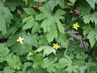 ゴーヤの花の数が増えてきました。 まだ、雄花ばかりですが、とてもきれいでかわいらしく咲いています。 グリーンカーテンになるのも、もうすぐです。