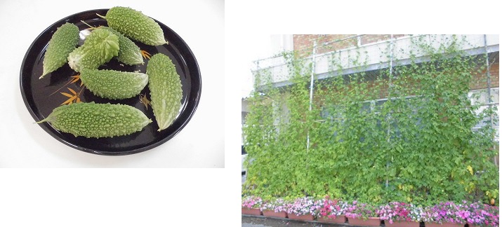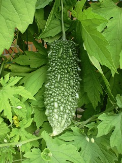きれいなゴーヤが実りました。 今年は去年よりゴーヤの実が少ないような気がします。