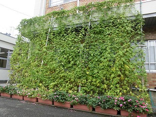 いしかわ学校版ISOに取り組んでいる穴水小学校にふさわしいグリーンカーテンです。