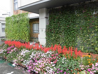 グリーンカーテンはよしずよりも日差しを遮る効果があるそうです(中部電力ホームページより)。