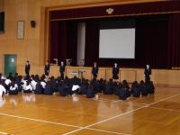 5日の全校集会では、今月の歌の大合唱、各委員長から11月の活動方針の報告、3年学年発表、運営委員会によるおたのしみ企画などがありました。今回の3年の学年発表は理科と社会で学んだことから作ったクイズで、全校で楽しむことができました。子ども達が考え、つくる全校集会、来月も楽しみです。
