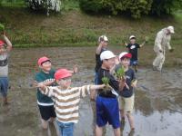 20日、5年生は、ふるさと学習の一環として田植えをしました。社会で米作りを学習しますが、実際に田植えをするのは初めてという子ばかりです。子ども達は、初めは泥の感触や虫にびっくりしていましたが、泥まみれになりながらも丁寧に苗を植えることができました。「まだやりたい!」「楽しかった!」という声がいっぱいの田植えとなりました。秋に稲刈りをする予定です。お世話していただいた下唐川地区の皆様、本当にありがとうございました。