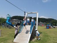 1年生は17日、生活科の学習で、校庭横の広場を探検しました。遊び方や危険な行為などについて確認し、そのあとは全員で楽しく遊びました。身近にある町の遊び場です。これからもけがをしないようルールを守り、遊んでほしいと思います。
