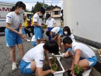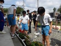 全校で育てている玄関の花。2学期のスタートは、2年生が水やり当番でした。2年生は花や自分達が育てている野菜を楽しみながら水やりをしてくれました。2年生、ありがとう!
