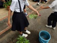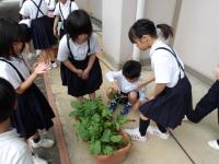 2年生は、生活科で育てている大根の観察を行いました。だんだん大きくなる様子を観察しながら収穫の日を楽しみにしている2年生でした。