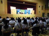本日、本校で町主催によるスクールシアターが開催されました。本校と向洋小学校の3~6年生は、生の演劇の迫力と小学校を舞台とする話の世界に引き込まれ、楽しい時間を過ごしました。劇団仲間の皆様、楽しい劇を見せていただき、ありがとうございました。