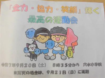 20日の運動会に向けての準備がスタートしました。6年生は、町内に貼る運動会のポスターを完成し、職員室に届けてくれました。校区内の商店街や駅などに掲示し、たくさんの方々に見に来てほしいと思います。1年生は団体演技の練習がスタート。リズムに合わせて一生懸命練習に励んでいます。当日を楽しみにしてください。