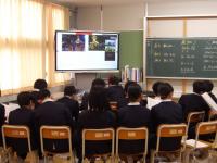 5日、3年生は、岐阜県の八百津小学校3年生とオンライン交流を行いました。総合的な学習の時間の学習や地震の経験等について発表しあいました。クイズや写真、絵の工夫など聞いてもらうための工夫があり、互いによい交流ができました。質問や感想などもたくさんあり、最後は別れを惜しむ様子も見られました。3年生の皆さん、ありがとうございました。