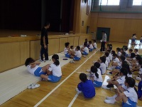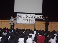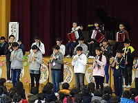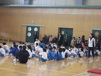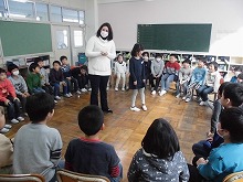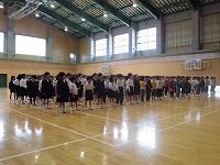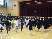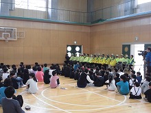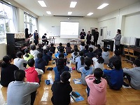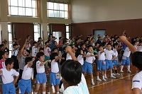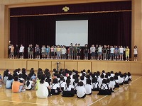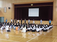 | 寒い体育館でしたが,今月も各委員の委員長が今月の目標 を大きな声で発表しました。 その後,1年生の学年発表では,国語で学習した「くじらぐも」 を一生懸命発表していました。 入学してから8か月。 堂々 と,全校児童の前で発表できて,また一歩,大きく成長した 1年生でした。 全校児童のみなさんの聴く姿勢も素晴らし かったのは,言うまでもありません。 | |