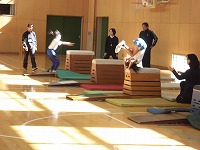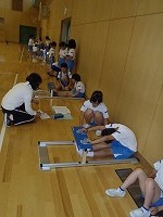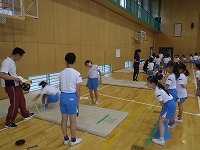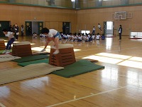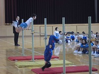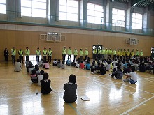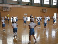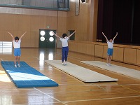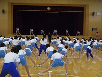 | <6年生による詩の朗読発表> さすが最上級生! 立派でした。 1~5年生の聴いている姿勢も 立派です。 | <今月の歌 練習の様子> めあては,「リズムにのってたのしくうたおう」 です。 | <体力アップ 練習の様子> 片足で10秒・・・立っていられるかな? |