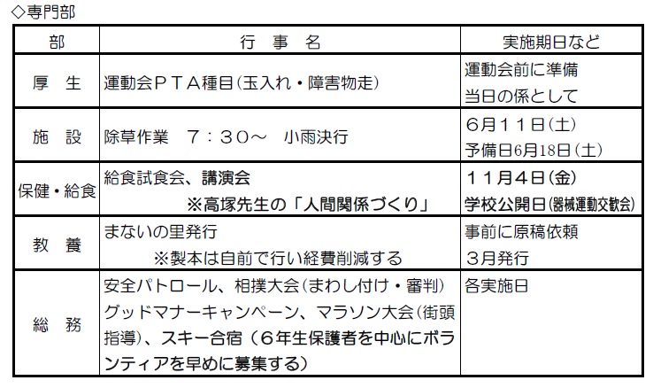 2.プログラム PTA種目は行いません。その他は,予定通り行います。