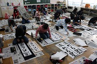 | 子供たちは,毎月最後の日に,今月の歌を廊下で合唱しています。 今日は,朝から太陽の光がまぶしい日となりました。 キラキラと輝く朝日のなかで,子供たちの歌が校舎中に,元気に響き渡りました。 | |