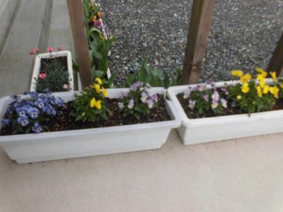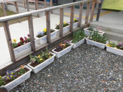 玄関のプランターの花がきれいに咲いています。この花は3月に卒業した卒業生が、4月、在校生にきれいな花を見てほしいと準備してくれたものです。卒業生からの素敵なプレゼントがうれしい4月です。