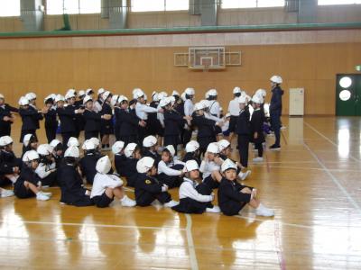 14日、地震を想定した避難訓練を実施しました。揺れがおさまると、子ども達は指示に従いすばやくヘルメットをつけ、静かに体育館に集合することができました。いざというとき、自分の身は自分で守れるよう訓練を繰り返し行っていきます。