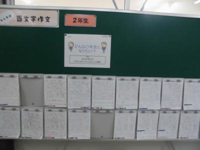 本校では、毎週、100文字で自分の考えを書く活動に取り組んでいます。今回のテーマは「どんな〇年生になりたい?」です。新しい学年に進級し、頑張りたいという気持ちが伝わる100文字作文でした。繰り返し100文字に取り組みながら、自分の考えを書いたり、言葉で伝えることができる力をつけてほしいと思います。