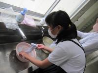 家庭科で初めての「洗濯実習」。6年生は、持ってきた靴下の汚れに応じて「もみ洗い」「つまみ洗い」など工夫しながら洗濯実習をしました。汚れが落ちてきれいになった靴下を「見て、見て」と声をかけあう姿が印象的な時間でした。