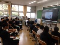 5日、3年生は、岐阜県の八百津小学校3年生とオンライン交流を行いました。総合的な学習の時間の学習や地震の経験等について発表しあいました。クイズや写真、絵の工夫など聞いてもらうための工夫があり、互いによい交流ができました。質問や感想などもたくさんあり、最後は別れを惜しむ様子も見られました。3年生の皆さん、ありがとうございました。