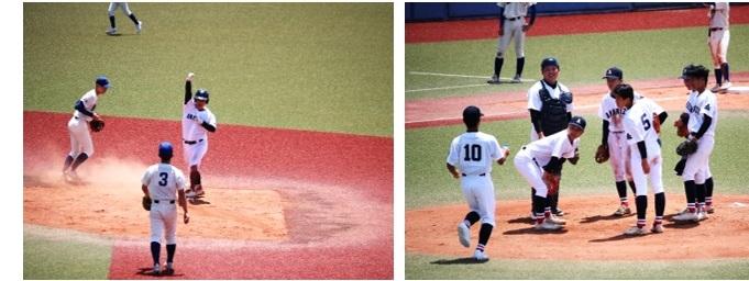 結果は残念ながら0-10で敗退しましたが、ツーベースヒットや満塁の場面などたくさんの見せ場を作り、全員が自分の役割をしっかりと果たし、力を尽くして戦ってくれました。暑さをものともせず全校生徒が力一杯応援し、大きな声が球場に響き渡り、選手を後押ししました。