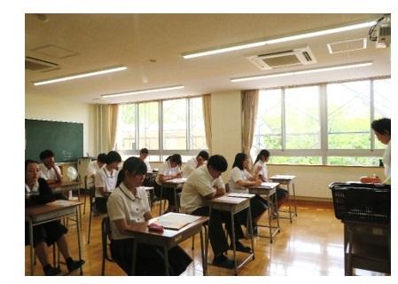 9月10日(水)、原子力発電所の緊急時に屋内退避指示があったという想定で屋内退避訓練が行われました。地震や火災による避難訓練とは別に、原子力防災訓練では①廊下・教室のドアや窓・カーテンを閉め、②できるだけ窓際から離れて屋内中央にとどまる、といった行動を取る必要があります。指示に従い、生徒達は速やかに退避行動をとりました。