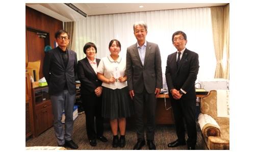 7月22日(火)、全国高等学校総合文化祭弁論部門に石川県代表として出場する本校の松本心和さん(3年)が穴水町役場を訪れ、吉村光輝町長と大間順子教育長に挨拶しました。