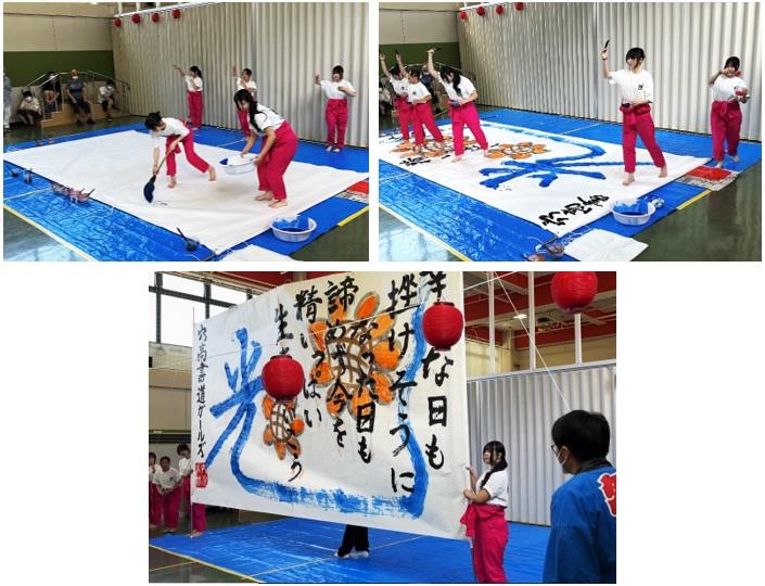7月25日(金)、本校書道ガールズが七尾市にある障害者支援施設「青山彩光苑」を訪れ、書道パフォーマンスを披露しました。生徒達はダンスを披露しながら「光」という字を大きく描き、お祭りの雰囲気を盛り上げました。