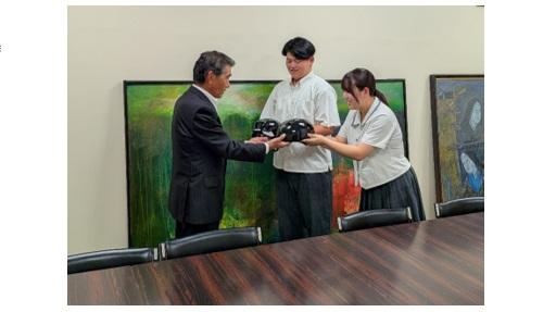 贈呈式では穴水町安全協会の方より「ヘルメットを着用することで命を守るとともに、高校生がしっかりヘルメットを被ることで周りの方々も着用しなくてはという良い影響を与えられるよう、是非活用して欲しいと思います。これからも交通ルールを守り、安心安全な高校生活を送れるように願っています。」とお言葉をいただき、前期生徒会長の橋本智徳さんがお礼を述べました。