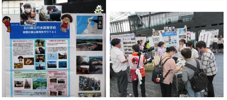 本校の4名の生徒は、積極的に他校の生徒と交流し、穴水高校の里山里海保全活動や地域活性化の取り組みをブースに来られた方々に熱心に説明しました。特別賞こそは逃し残念ですが、全国の高校生に十分にPRできたと思います。