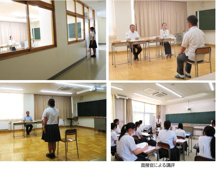 8月28日(木)、就職・公務員希望者10名を対象に穴水町役場、穴水町ロータリークラブ、穴水町商工会などから4名の外部面接委員をお招きし、模擬面接を行いました。校内2会場に分かれ、一人約20分の個人面接形式で実施しました。