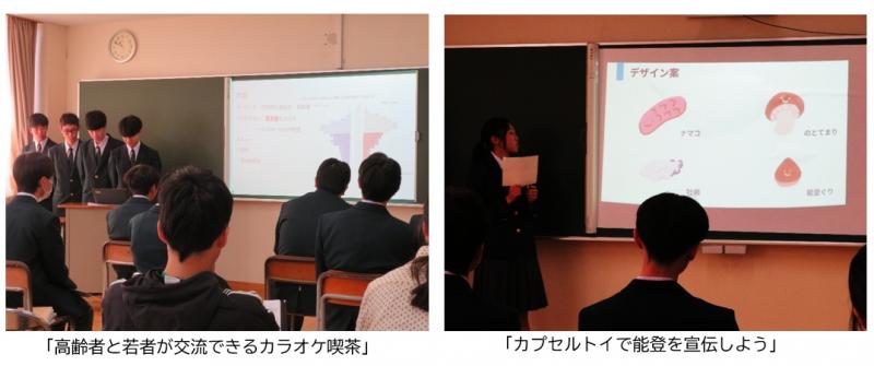 探究アドバイザーの先生からは、「どのグループも穴水らしさを取り入れた良い企画だと感じました。役場や仮設住宅の方々など、実際に人の声を聞いてやっていたのがとても良かった。そして企画だけでなく実際にやってみた班もあり、うまくいったところもそうでなかったところも、とにかく挑戦したことは評価されることです。大きい課題を小さい課題に分け、小さい課題から取り組んでいくことで次の課題をクリアすることにつながります。企画だけで終わるのではなく、高校生である自分たちに何が出来るのか、そしてそれぞれの課題の先にどういう状態を目指しているのかという目標を明確にすることが大事です。「何のために探究するのか」ということを考え、グループ内で常に話し合いを持ちながら今後も進めていって下さい。」と講評をいただきました。