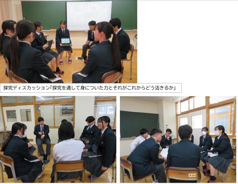 探究中間発表会では、「地域の活性化」をテーマにグループごとに発表し合い、後半では3年生を交えてディスカッションを行いました。保護者や学校関係者の方々が参観され、生徒の発表の様子を参観していただきました。ご来校ありがとうございました。