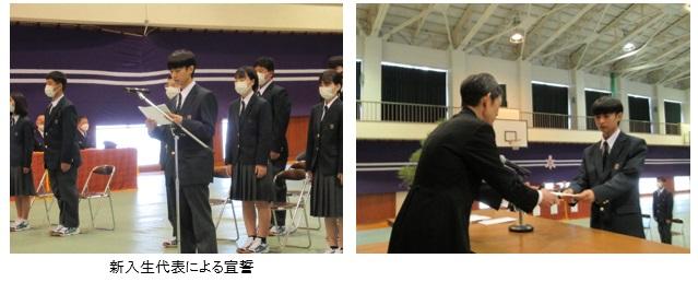 その後、新入生代表が「高校生になるということは大人への第一歩を踏み出したということです。それを思う私たちの胸は夢と希望、そして不安と心配でいっぱいです。しかし私たちは決してあきらめたくない。一人一人の目標や夢を実現させたい。だから私たちは3年間の学校生活の中で、仲間と協力する力・自分自身を向上させる力をしっかりと身に付けて、社会に通用する魅力ある大人を目指して日々頑張ります。」と力強く宣誓し、1年生は新しい教室へ向かいました。穴水高校での生活が充実した毎日になるよう職員一同サポートしていきたいと思います。