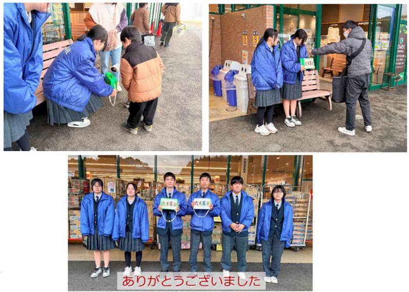 12月6日(土)、穴水町内の商業施設で生徒会役員を中心に歳末募金活動を行いました。生徒達は笑顔で協力を呼びかけ、たくさんの方々から善意の志をいただくことができました。この募金は後日穴水町社会福祉協議会にお届けする予定です。ご協力いただいた皆様、ありがとうございました。
