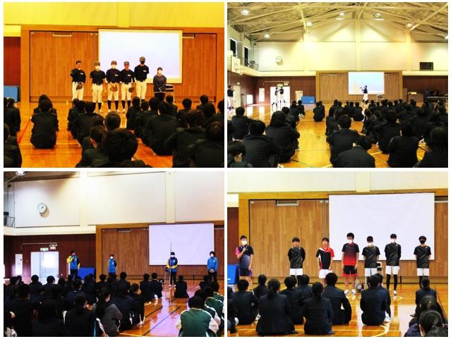 4月11日(火)、新入生歓迎会と部活動紹介が行われました。前年度生徒会長が歓迎の挨拶を述べた後、生徒会執行部から穴水高校の行事や学校生活について説明がありました。