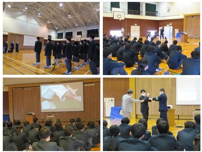最後に穴水庁舎所長より「交通事故や防犯は自分ががんばっても防ぐことができないこともあります。『行ってきます』と言って家を出ても『ただいま』と無事に帰ることができる保証はどこにもありません。自分も含め大切な人を大事にするために、今日の教訓をしっかりかみしめ、事件や事故にまきこまれないようにし、素晴らしい高校生活を送って下さい。」とお話ししていただきました。