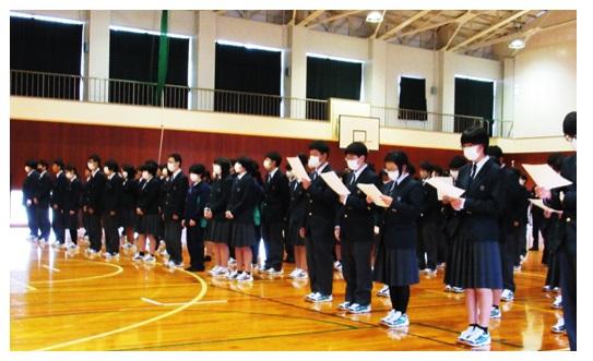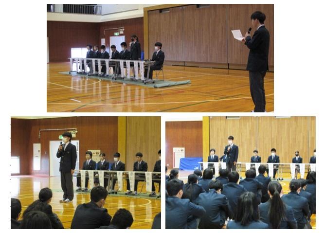 新生徒会長は「高校時代に何か大きな仕事をしてみたいと思い立候補しました。信任してもらいうれしく思います。本校の生徒達皆が自立して高校生活を送れるような学校にしたいです。」と抱負を述べ、新しい生徒会執行部が誕生しました。