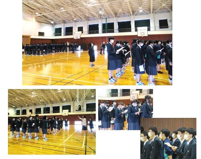 新型コロナ感染症の流行で、式典などで校歌を声に出して歌うことが制限されてきましたが、少しずつ規制も緩和され、本校では久しぶりに校歌歌唱練習を実施しました。