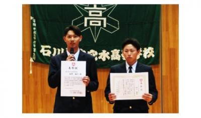 石川県高野連より令和6年度の優秀選手33名が発表され、本校3年の東野魁仁さんが優秀選手に選出されました。また、能登地区優秀選手に細口櫂翔さんが選ばれ表彰されました。