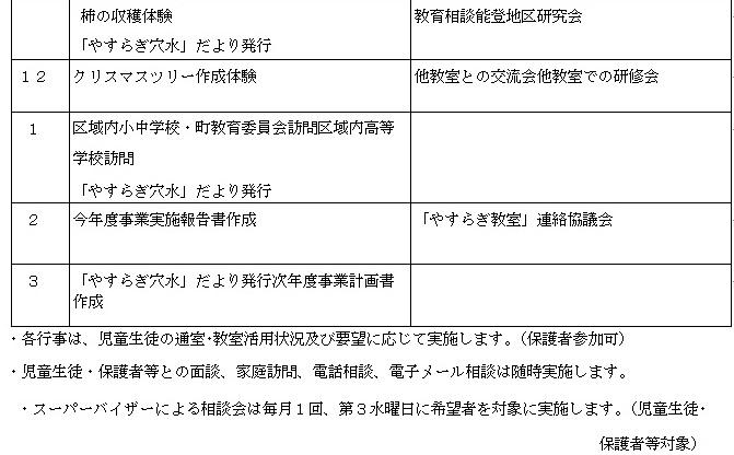 SV:毎月1回(第3月曜日) SC:毎月3回(第1木曜日はやすらぎ穴水教室 第2木曜日は穴水高校
