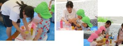 絵の具を使ったアイスフラワー作りやかき氷などの夏らしいイベントを子供達と一緒に楽しみました。