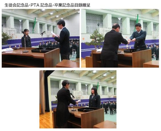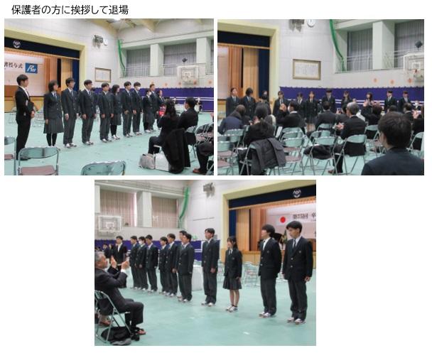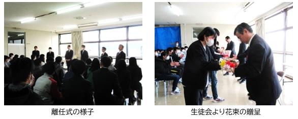 そのあと行われた離任式では、転任される先生方からご挨拶を頂き、生徒会役員から花束が贈呈されました。式には多くの卒業生達が出席してくれ、先生方との別れを惜しんでいました。