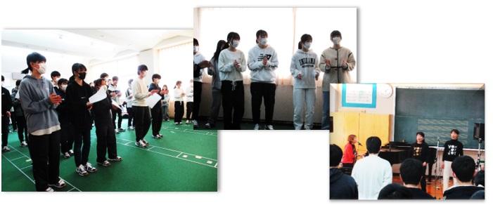 島崎校長先生は中学校で学校が再開できたことに触れ、「たくさんの方々の支援で学習を進めることができました。支えて下さった方々への感謝の気持ちを忘れずに、新年度からのみなさんの頑張りで恩返しをしていきましょう。4月から由比ヶ丘の校舎に戻りますが、完全に災害前の状況に戻ることは難しいでしょう。しかし、『止まない雨はない、明けない夜はない』と言います。生徒の皆さんには、決して希望を捨てず、負けない強さを持って欲しいと思います。これからも「チーム穴高」で生徒の皆さんと教職員が一丸となって前に進んでいきましょう。」と、来年度に向けて生徒たちに激励の言葉を述べました。(→令和5年度 3学期終業式式辞.pdf)