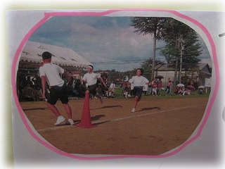 | | This is a picture of our sports day. We have Nanchusoran, relays ando so on. It's not easy but fun. |