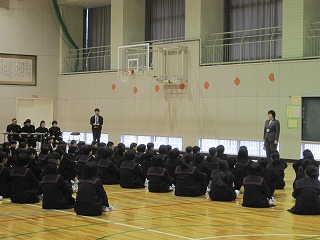 校長先生のお話                    生徒会役員立候補者によるアピールの様子