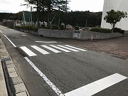 登校時、校舎側に渡る際に横断歩道がなかったため、交通安全上、とても危険な状況がありました。4月に警察署に横断歩道の設置を要望し、手続きや設置基準等もあり時間がかかりましたが、本日、玄関前に横断歩道が設置されました。