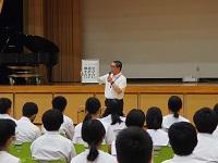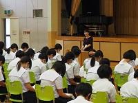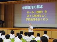 始業式では,校長先生のお話の後,学習担当,生徒指導担当,給食担当,清掃担当の先生方から2学期からの学校生活について確認のお話がありました。