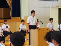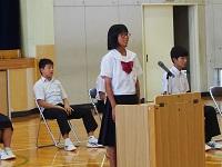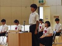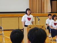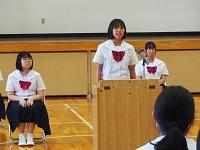 自分が生徒会執行部,委員長としての掲げている目標とその熱意を全校生徒の前で述べました。
