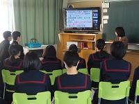 12月15日(水)にオンラインで繋ぎ、最初に北方領土元島民(色丹島出身)の方の体験談(その当時の状況やふるさとを思う気持ちを涙を流しながら話された。)をお聴きし、その後、本校と岐阜県、大阪府、根室市の中学生と繋ぎ、質問や事前学習で学んだことや元島民の体験談を聞いての感想を出して交流しました。元島民の方のお話で印象に残ったことは、元島民の方の高齢化が進み、少しずつ北方領土問題に関心を持つ国民が減ってきていることを心配され、また、ふるさとはとても大切な場所だから、皆さんも大切にしてほしいということを訴えていらっしゃいました。