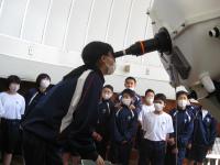 その間、職員の消火班は、消火器を持って調理室へ走るとともに、実際に消防署へ訓練火災の一報を入れる。誘導班は、トイレなどに生徒が残っていないか、声をかけて3階から1階へ走る。放送から、体育館に避難し、生徒全員の無事を確認するまでに、約3分。