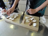 調理では,栄養教諭からご指導をいただきながら天ぷらを作りました。 今回の体験も,多くの人のご協力があり実現することができました。 植菌に携わってくださった方々,原木の管理をしてくださった方々,本当にありがとうございました。 生徒はまたひとつ,穴水のよさを発見することができました。