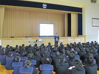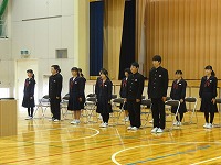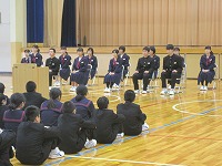 最後に「自問清掃」についての指導がありました。 穴水中学校では清掃を開始する前に5分間の「自問」の時間があります。 その5分間fは,きょう一日の自分の生活を振り返るための時間です。その後,10分間の清掃があります。 自問清掃の時間は,いっさいしゃべりません。 しゃべりたい気持ち,さぼりたい気持ちをがまんし,自分の心と学校を磨きます。